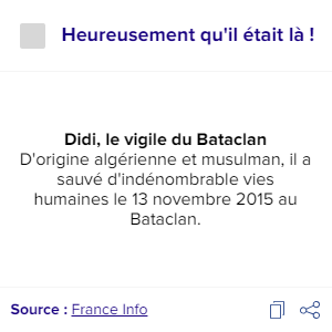 D'origine algérienne et musulman, il a sauvé d'indénombrable vies humaines le 13 novembre 2015 au Bataclan.